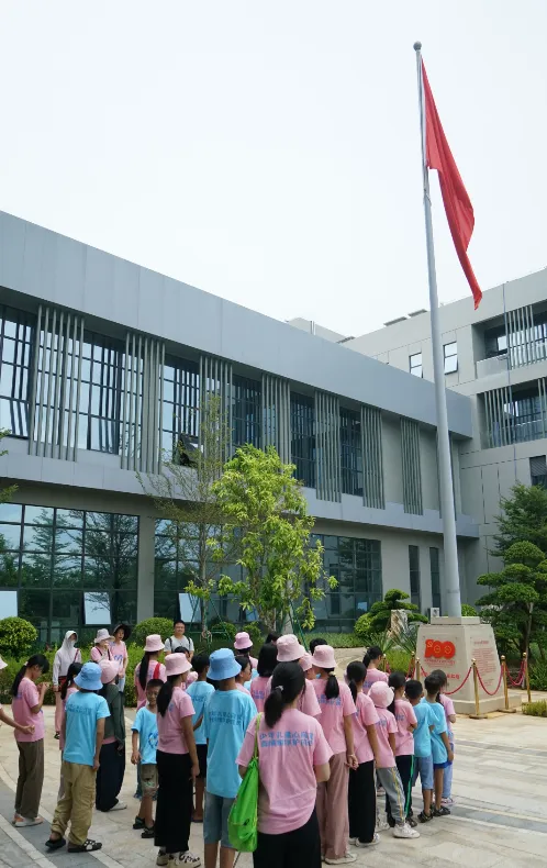 紧接着,孩子们来到了建党百年庆典红旗——070号红旗前。讲解员讲述了PP电子药业集团与庆典红旗的深厚渊源。孩子们听得津津有味,眼中闪烁着对党和国家的热爱与敬仰。